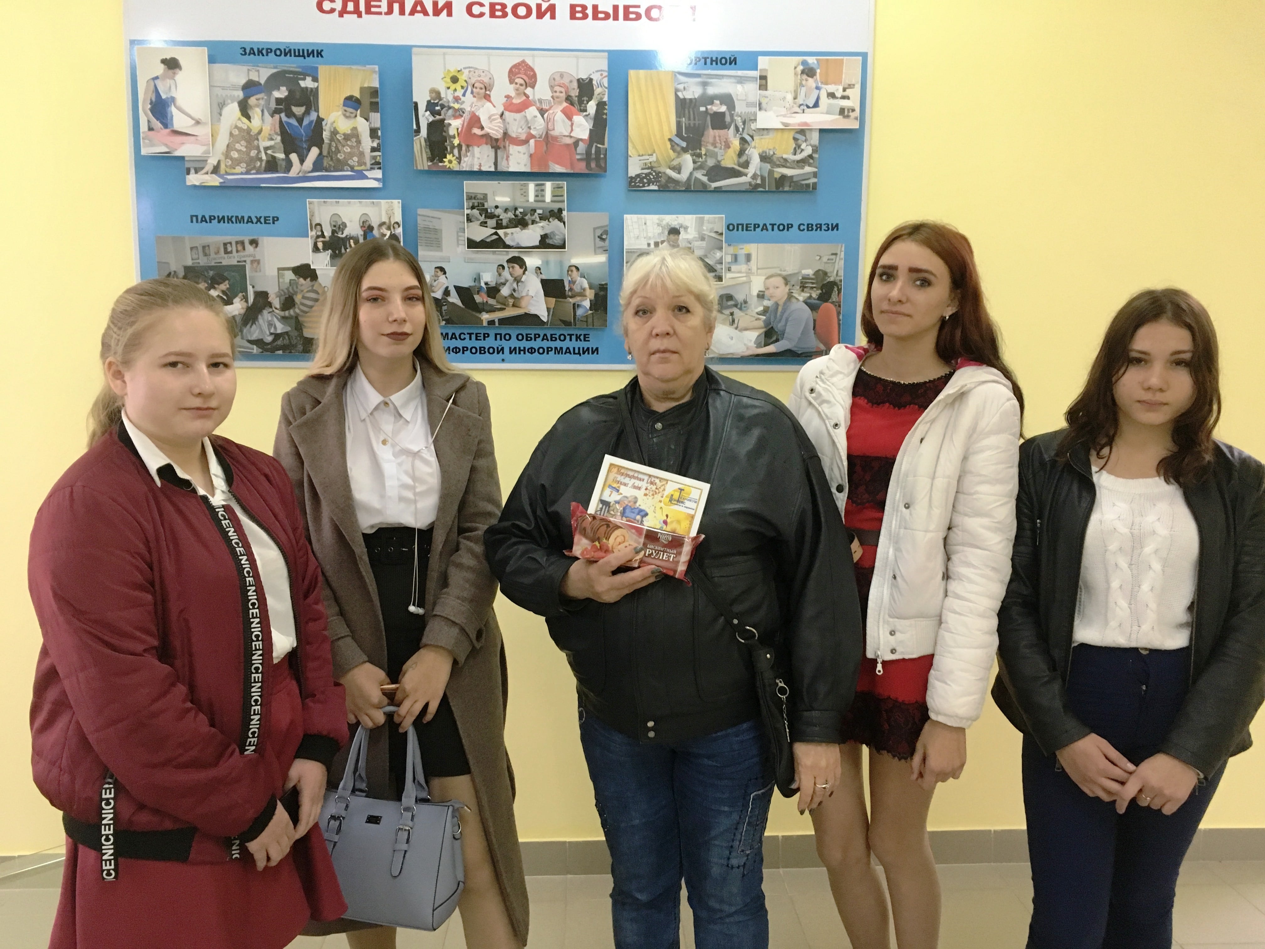 Обучающиеся техникума профессии Оператор связи (гр. 3, 1.11, 1.10) поздравили людей пожилого возраста. Пожилые прохожие были приятно поражены, получив памятные открытки и сладкие подарки. Открытки необычные, изготовлены самими обучающимися. Студенты поздравили людей преклонного возраста с праздником, пожелав им крепкого здоровья и долгих лет жизни. В свою очередь пожилые люди высказали слова благодарности обучающимся и их руководителям, пожелав им успешной учёбы.
